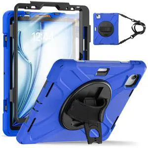 Case Compatible with iPad Air 11 2025/2024 with Screen Protector Pen Holder | Case for iPad Air 7th/6th Gen 11 inch | Heavy Duty Rugged Protective Cover W/Hand Strap Shoulder Strap