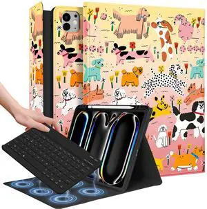 Wazzasoft for iPad Pro 13 inch Case with Keyboard M4 - Pencil Holder Folio Women Girls Cute Kawaii Strawberry Unique Design for Apple Tablet Cover Pro 13 2024, Dogs