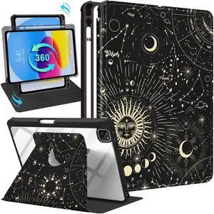 Kidcube for iPad Air 13 Inch Case M3 2025/M2 2024, for iPad Pro 12.9 Cases (2022/2021/2020/2018) - for Women Girls Cute Folio Cover with Pencil Holder Kawaii Sun Moon Stars Design Rotating Stand Teens