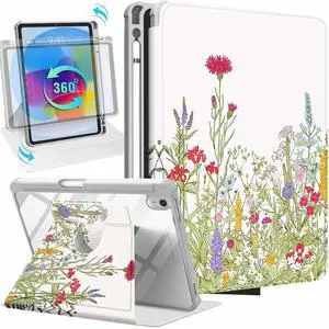 Uppuppy for iPad A16 Case - for iPad 10th Generation Case 10.9 Inch Women Girls Kids Cute Flower Girly Teens Kawaii Pretty Unique Aesthetic Rotating Stand Folio Tablet Cover for Apple 10/11 2025