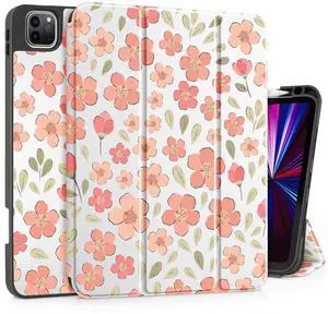 May Chen Case for iPad Pro 11-Inch M5/M4 2025/2024 (6th/5th Generation), [Built Pencil Holder 2/USB-C] Soft TPU Back Cover with Trifold Stand Support Auto Wake/Sleep, Spring Flower