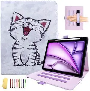 UUcovers for iPad Air 11 inch Case M3 2025/M2 2024 & iPad Air 5th/4th Gen 10.9" & iPad Pro 11 inch Case 4th/3rd/2nd/1st Gen with Pencil Holder/Stand/Hand Strap,Auto Wake/Sleep, Cute Red-Billed Cat