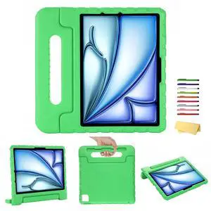 UUcovers Kids Case for iPad Air 11-inch M3/M2 (2025/2024) & iPad Pro 11 inch M4 (2024) with Pencil Holder/Kickstand, Lightweight Anti-Slip Handle Stand Soft EVA Foam Shockproof Rugged Cover, Green