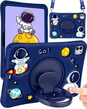 Uppuppy for iPad Pro 11 Inch Case 2024 Boys Girls Cute Astronaut Cover Kawaii 3D Spacemen with Rotating Handle Stand + Strap Soft Silicone Funda for iPad Pro 11 M4 Case