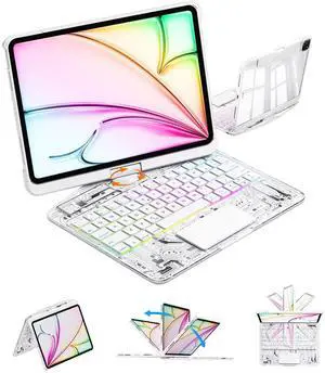 Uminy Wireless Keyboard Case for iPad Air (M3/M2,2025/2024) 11 Inch, Compatible with 10.9 Inch iPad Air 5th/4th and 11 Inch iPad Pro 4/3/2/1, 360° Rotating Transparent Case, 7 Colors Backlight, White