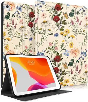 Uppuppy for iPad 9th/8th/7th Generation Case 10.2 Inch Folio Cover with Pencil Holder Women Girls Cute Flower Girly Kawaii Floral Pretty Teens Rotating Stand for Apple iPad 7/8/9 (2021/2020/2019)