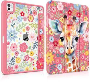 Loyrina Case for iPad Pro 13 inch (M5) 2025 (M4) 2024 Release Slim Lightweight Cute Hot Pink Cover with Clear Back TPU Edge Pencil Holder Trifold Stand, Giraffe
