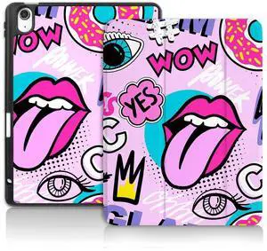 Trizoanic for iPad Air 11 inch M3 2025/M2 2024 & Air 5/4 10.9 inch 2022/2020 - Protective Case with Pencil Holder, Auto Wake/Sleep & Dual Stand,Chic Kiss