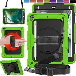 DuraSafe Cases for iPad 9th 2021 8th 2020 7th 2019 Generation [iPad 9 iPad 8 iPad 7 ] 10.2 Inch A2602 A2270 A2197 MK663LL/A MK673LL/A MYN62LL/A MW6Y2LL/A Full-Body Cover with Shoulder Strap - Green