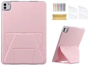 Dteck for iPad Pro 13-inch (M4/M5) 2024/2025 Release Ultra Thin PU Leather Case with Kickstand, Support Pencil Wireless Charging, Slim Lightweight Anti-Scratch Protective Tablet Cover Shell, Pink