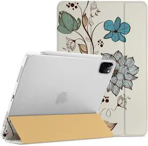 DuraSafe Cases for iPad PRO 11 Inch 2nd 3rd [ PRO 11 2020 2 2021 3 Gen ] A2377 A2459 A2228 A2068 A2230 A1980 A2013 A1934 A1979 Trifold Printed Hard Smart PC Transparent Back Cover - Blossom