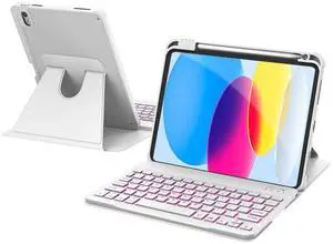 ZENLU Keyboard Case for iPad 10th(2022) 11th(2025) Generation, Detachable Rugged Protective Case with 7-Color Backlit Keyboard, Multi-Touch Trackpad, Pencil Holder, Vertical Kickstand (White)