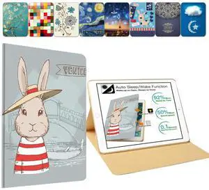 DuraSafe Cases for iPad PRO 11 Inch 1 Generation [Pro 11 1st 2018 ] A1980 A1934 A2013 MTXN2LL/A MTXP2LL/A MTXR2LL/A MTXQ2LL/A MTXT2LL/A Printed Smart PU Leather Flip Folio Book Cover - Bunny Hat