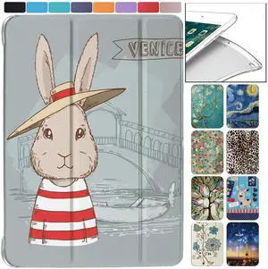 DuraSafe Cases for iPad PRO 12.9 3 Gen 2018 [iPad 12.9 Inch 3rd ] A1876 A2014 A1895 A1983 Trifold Printed Hard Smart PC Transparent Back Cover - Rabbit Cartoon Print