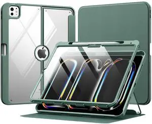 MoKo for iPad Pro 13 Inch Case (M5/M4) 2025/2024 with Pencil Holder, [Built-in Screen Protector], iPad Pro 13 M5/M4 Case with Clear Back & Magnetic Multi Angle Stand Cover, Midnight Green