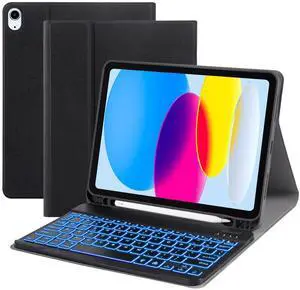 Akkerds for iPad A16 Case with Keyboard - 7 Colors Backlit Keyboard for iPad 10th Generation/iPad Air 11 Inch - Wireless Folio Cover for iPad Air 10.9 Inch/iPad Pro 11 Inch 2022/2021/2020 (Black)