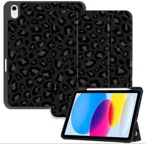 Deokke Compatible with iPad (A16) 11th Generation 11 Inch 2025,iPad 10th Generation Case 2022,10.9 Inch Case Pencil Holder Soft Back Auto Sleep/Wake Cover Girls Women-Black Leopard Cheetah Pattern