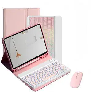YoyoyoooMi Keyboard Case for iPad 11/10th Gen Case for 11/10.9 inch 2025 A16/2022, Mouse and Detachable Wireless Keyboard, 7-Color Backlit, Detachable Keyboard Case with Pencil Holder.(Pink)