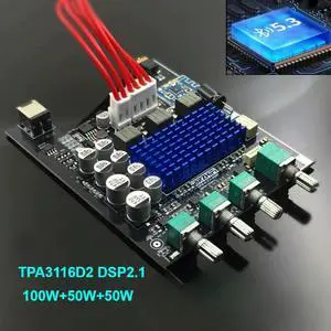 TPA3116 Bluetooth 5.3 DSP 2.1 power amplifier board 100W+50W+50W Subwoofer Audio Amplifier DC12V-24V
