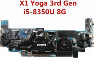 For X1 Yoga 3rd Gen Laptop Motherboard i5-8350U CPU 8G RAM 5B20V13402 01YN206 With heatsink fan