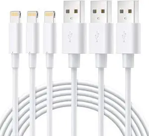 MFi Certified iPhone Charger Cable - Novtech 3Pack 3FT Lightning Cable - iPhone USB Charging Cable for iPhone 11 Pro XR Xs Max X 8 Plus 7 Plus 6S Plus 6 Plus 5S 5C 5 SE iPod iPad Air Pro - White