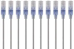 Cat6A Ethernet Patch Cable - Snagless RJ45, 550Mhz, 10G, UTP, Pure Bare Copper Wire, 30AWG, 10-Pack, 5 Feet, Gray - SlimRun Series