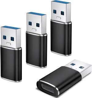 USB C Female to USB Male Adapter (4-Pack) Type C Charging Cord Connect USB A Charger for iPhone 17 16 15 14 13 12 11 Pro Max iPad Air 5 Mini 6 Galaxy S25 S24 S23 S22 Ultra Google Pixel 9 8