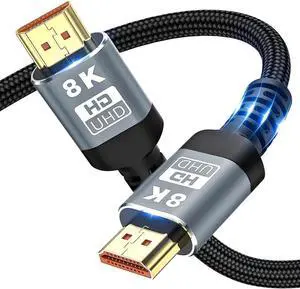 8K HDMI Cable 3.3ft Certified 2.1 HDMI Cables Premium Braided 48Gbps High Speed 3D 8K60 4K120 144Hz HDCP 2.2&2.3 CL3 ARC eARC Dolby - HD/HDR/HDTV/PS5/PS4/Xbox