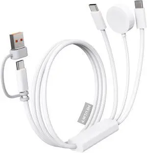 5-in-2 Multi Charging Cable for Apple Watch Charger: USB A/C Input, Lightening/Type C/Micro/Mini B/Wireless Output, Compatible with iPhone 15-13, iWatch 1-9, Galaxy S23-22, 4FT- PD 100W Max