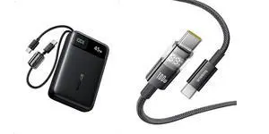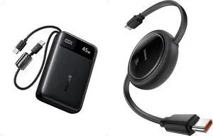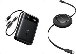 Baseus 100W 6.6ft Retractable USB C Fast Charging Cable, Bundle with 20000mAh Compact Portable Charger 45W, CCC Certified Power Bank Built-in USB-C Cables
