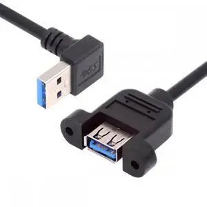 Aomoproing Left Angled USB 3.0 Male to Female Type-A Panel Type Header Cable 90 Degree Connector 30cm