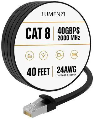 Nippon Labs Cat8 RJ45 35FT Ethernet Patch Internet Network LAN Cable, Indoor/Outdoor, 24AWG, Shielded Latest 40Gbps 2000Mhz, Weatherproof S/FTP for Router, PS4, PS5, Xbox, PoE, Switch, Modem (Black)- Brand: Nippon Labs