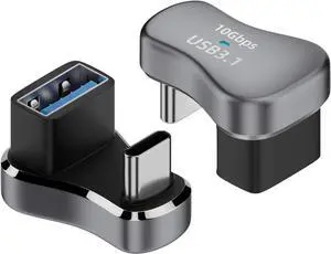 10Gbps 180-Degree USBC to USBA 3.1 Adapter USBC 180 Degree Adapter Fast Charging 2Pack