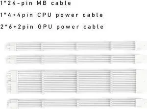 • Length: 1x M/B Cable: 610mm / Comb: 3pcs 2x CPU Cable: 700mm / Comb: 2pcs 1x PCIe Gen5 Cable: 750mm / Comb: 5pcs 2x SATA Cable: 950mm-500/150/150/150mm (90°/90°/90°/180°) 2x 2SATA/2Molex Cable: 810mm-450/120/120/120mm (90°/90°/180°/180°)