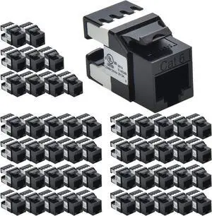 Cat.6 RJ45 110 Type 180° Keystone Jack (50-Pack, Black)