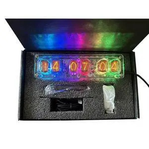 RGB 6 Digit IN-4 Nixie Glow Tube Clock IN4 with LED Backlight Auto-calibration Time Type C 5V with Remote Control