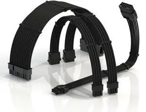LINKUP - AVA 12VHPWR PCIE 5.0 Power Extension Cables600W 16AWGUL-Rated, Sleeved Jacket, Molded Plugs4 Pcs Kit for RTX5000 RTX4000 GPUsBoost Gaming Performance30cm Black