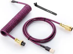 GUNMJO Starlight Coiled USB C Keyboard Cable for Gaming Keyboard, Double-Sleeved Mechanical Keyboard Cable with Detachable Metal Aviator, 1.5M USB-C to USB-A, Purple Color with Gold Aviator Connector