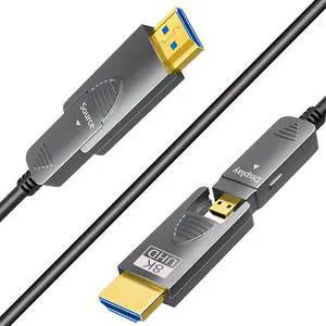 25ft 8K Fiber Optic HDMI Cable, Micro HDMI to HDMI 2.1, Detachable Type A+D, 48Gbps Ultra Speed, HDR, 3D, eARC, in Wall CL2 / CL3 Rated, Slim and Flexible for PS5 Project TV