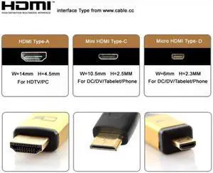 Xiwai Cable CYFPV Mini HDMI Type C Male Connector Standard Straight for FPV HDTV Multicopter Aerial Photography