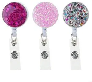 3Pcs Glitter Sequins Badge Reels for Nurse Doctor, Retractable Badge Reel Clip