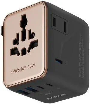 Type: MOMAX Universal Travel Adapter, GaN PD 35W Fast International Power Adapter, 2AC, 3 USB C & 2 USB A, Worldwide Travel Plug Adapter, International Power Adapter for Europe, USA, Japan, Australia