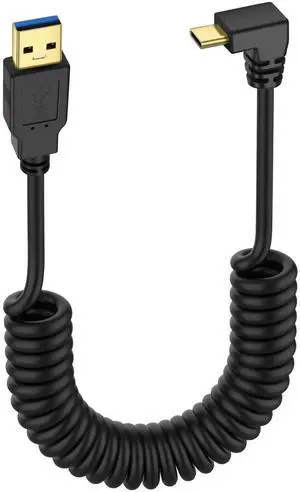 Aomoproing 90 Degree USB 3.0 to USB Type C Coiled Cable, 5Gbps Retractable Charging & Data Transfer Cord (Male to USB-C), Compatible with Phone, Tablet & Other USB-C Devices