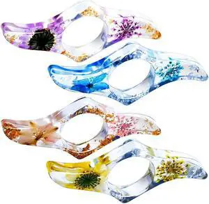 Ruth's sister 4 Pcs Dried Flower Resin Thumb Book Holder-Handmade Resin Holders Light Weight Book Opener Bookmarks (Wave Style)