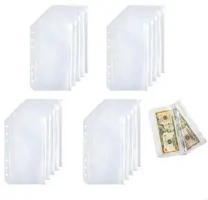20Pcs Binder Pockets Clear Zippered Folder for 6-Holes Binder, Budget Planner