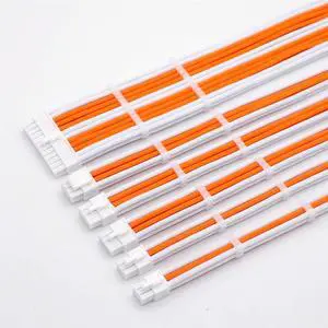 Customization 4mm PET Sleeve Extension Power Supply Cable Kit 6Pcs 30CM Cables 18AWG ATX/EPS/8-pin PCI-E/6-pin PCI-E (White & Orange)