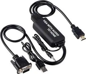 BUCIER HDMI to VGA Cable, 6ft/1.8m Gold-Plated 1080P HDMI Male to VGA Male Video Audio Converter Adapter Cord Support Notebook PC DVD Player Laptop TV Projector EtcBrand: QaoqudaColor: BlackSpecifications: Brand: Qaoquda, Cable Type: , Length: Feet, Color: Black, Gauge: AWG, Outer Material: , Material: , Item Shape: , Connector Type: , Number of Pins: , Connector Gender: , Item Weight: 0.096 kilograms, Dimensions: , Compatible Devices: Laptop, Television, DVD Player, Monitor, Specification Met:Model #: FA73815