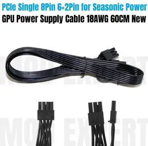PCIe 8Pin to 2x8Pin(6+2Pin) GPU Cable 60+20CM 18AWG For CoolerMaster MWE GOLD 550W 650W 750W Fully Modular Not for MWE V2 Series