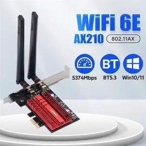 WiFi 6E AX210 PCIE Adapter, 5374Mbps, BT5.3, 802.11AX, Tri-Band, for Win10/11