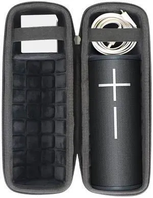 Hard Case Fits for Bluetooth Speaker with Soft Silicone Cover Mesh Pocket for Accessories, Black